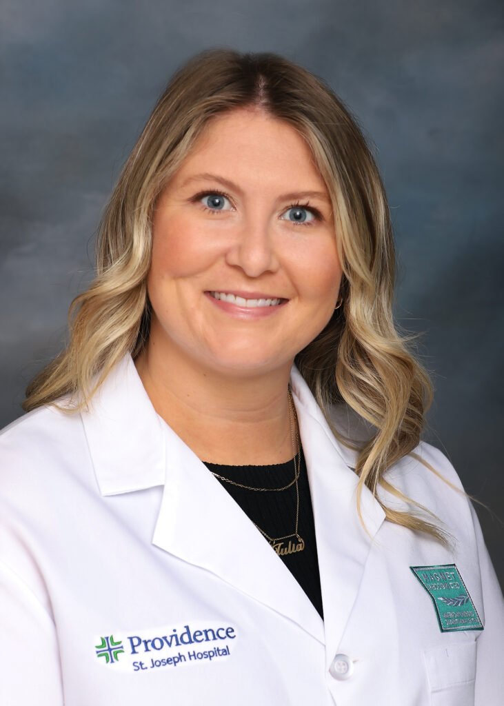 Julia is a Board Certified Adult Gerontology Acute Care Nurse Practitioner with a focus on adult and geriatric populations. She is currently on staff at St. Joseph Hospital and specializes in inpatient and outpatient care. She has many years of experience working as a registered nurse in the emergency department and earned her Masters from West Coast University in 2024. She is passionate about preventative health as well as patient-centered care. In her free time, she enjoys pilates, walking her dog, watching Sunday football, and spending time with her family.